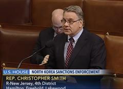 U.S. Rep. Chris Smith (NJ-04) spoke on the House floor during debate in the House of Representatives today: Mr. Speaker, the North Korea dictatorship is an existential threat that requires significantly enhanced vigilance and response. The North Korea Sanctions Enforcement Act of 2016 authored by Chairman Ed Royce will ensure that the Obama Administration takes meaningful action to mitigate North Korea’s cruelty, human rights abuse and military danger. The U.S. can no longer sit on the sidelines...