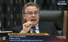 On the eve of the 25th Anniversary of the Tiananmen Square Massacre, when the Chinese government violently suppressed demonstrations for democracy and human rights on June 3-4, 1989, as well as the recent passage of the 20-year mark since then-President Bill Clinton renewed China’s trade privileges and removed an effective tool for supporting democratic reforms, Congressman Chris Smith (NJ-04) said human rights should be put at the heart of U.S. foreign policy toward China’s government. “Twenty-...