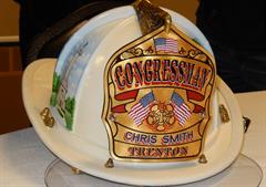 A throng of firefighters gathered at the Hamilton Elks Lodge on Kuser Road today to fete U.S. Congressman Chris Smith (Robbinsville, N.J.) for his work to protect the jobs of Trenton firefighters over the past four years by helping to secure two key grants worth over $28 million and heading off massive layoffs. At the surprise event, Smith was presented with a white fire chief’s helmet with a broad badge that read “Congressman” and an engraved name placard below it that read “Chris Smith.” He al...