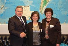 Brookdale Community College’s Linda Wang, Professor of Mathematics (center) was recently honored in a Washington DC ceremony in which she and 36 other teachers across the country were selected for the prestigious Professor of the Year award offered by the Carnegie Foundation for the Advancement of Teaching and the Council for Advancement and Support of Education (CASE). The program salutes “the most outstanding undergraduate instructors in the country—those who excel as teachers and influence th...