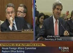Congressman Chris Smith (NJ-04), a senior member of the House Foreign Affairs Committee who plans to vote against the House resolution next week to authorize the use of U.S. military force in Syria, today directly asked U.S. Secretary of State John Kerry pointed questions about evidence justifying use of force, as well as about the duration and planning of the military action. Though Kerry did not answer Smith questions, the Congressman announced his legislation to create a Syrian War Crimes Tri...