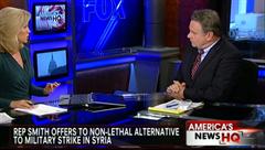 Cong. Chris Smith (NJ-04) on the set of Fox News Channel Sunday program, America's New Headquarters, with anchor Shannon Bream discussed his resolution to create a Syrian War Crimes Tribunal as an alternative to a military attack on Syria. Smith, a senior member of the House Foreign Affairs Committee who has announced that he will vote against authorizing President Obama’s plans for military strikes in Syria, said that a Syrian War Crimes Tribunal is a nonlethal alternative to missiles and bombs...