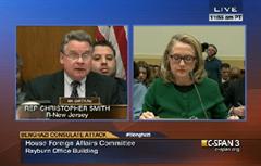 U.S. Rep. Chris Smith (NJ-04), and other senior members of the House Committee on Foreign Affairs, questioned Secretary of State Hillary Clinton about her handling of the terrorist attack in Benghazi which left four Americans dead, including U.S. Ambassador Chris Stevens. At a congressional hearing Wednesday, Smith gave the following are excerpts of his remarks. (Click here or image below to watch the video): "One of my top concerns is that we seem to be relearning the same lessons—again and aga...
